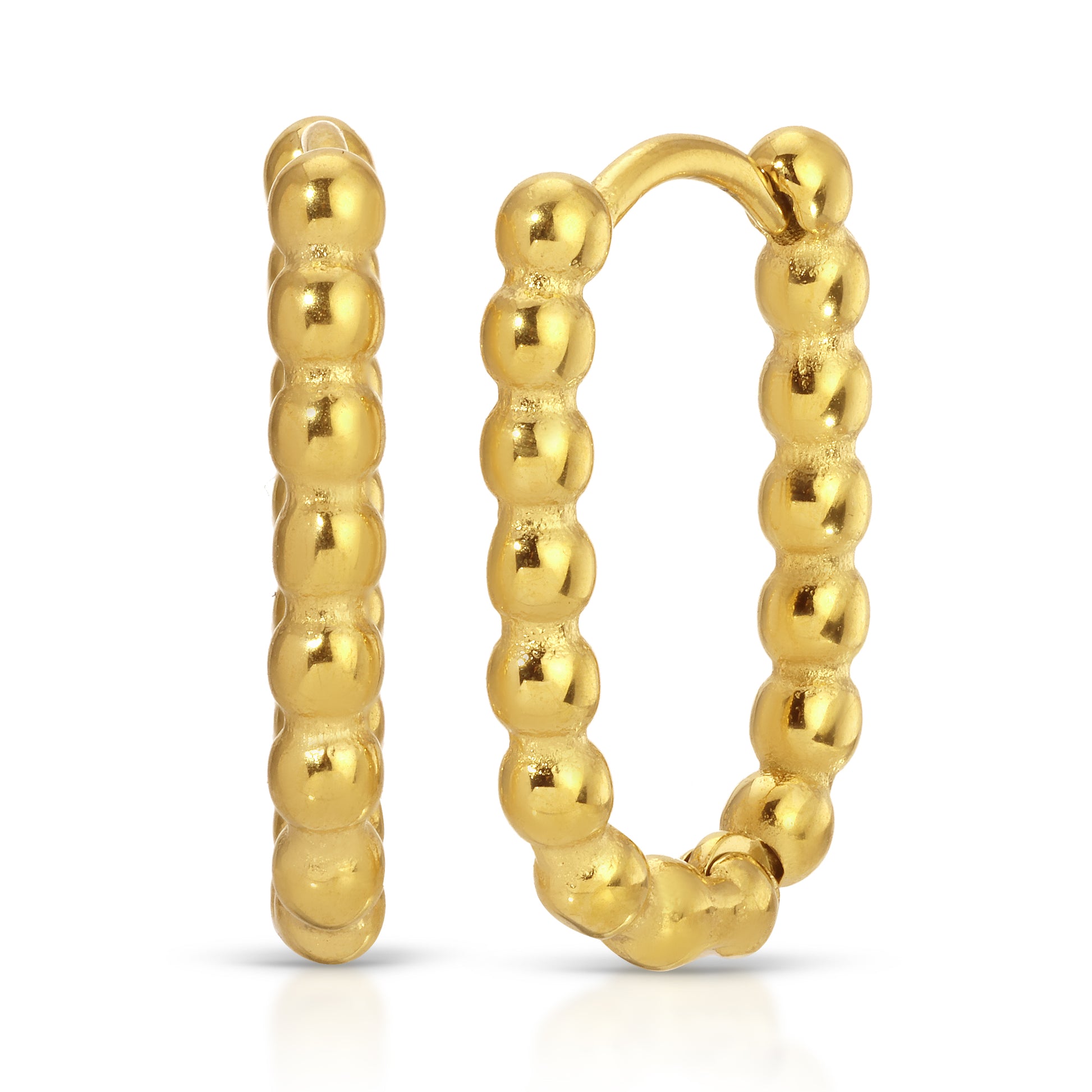 Minimal, light-catching, and effortlessly classic. The Beaded Hoops feature a row of polished gold beads that form a delicate open hoop, giving you shine, texture, and simplicity all in one. They’re lightweight enough for everyday wear and elegant enough to dress up any look.