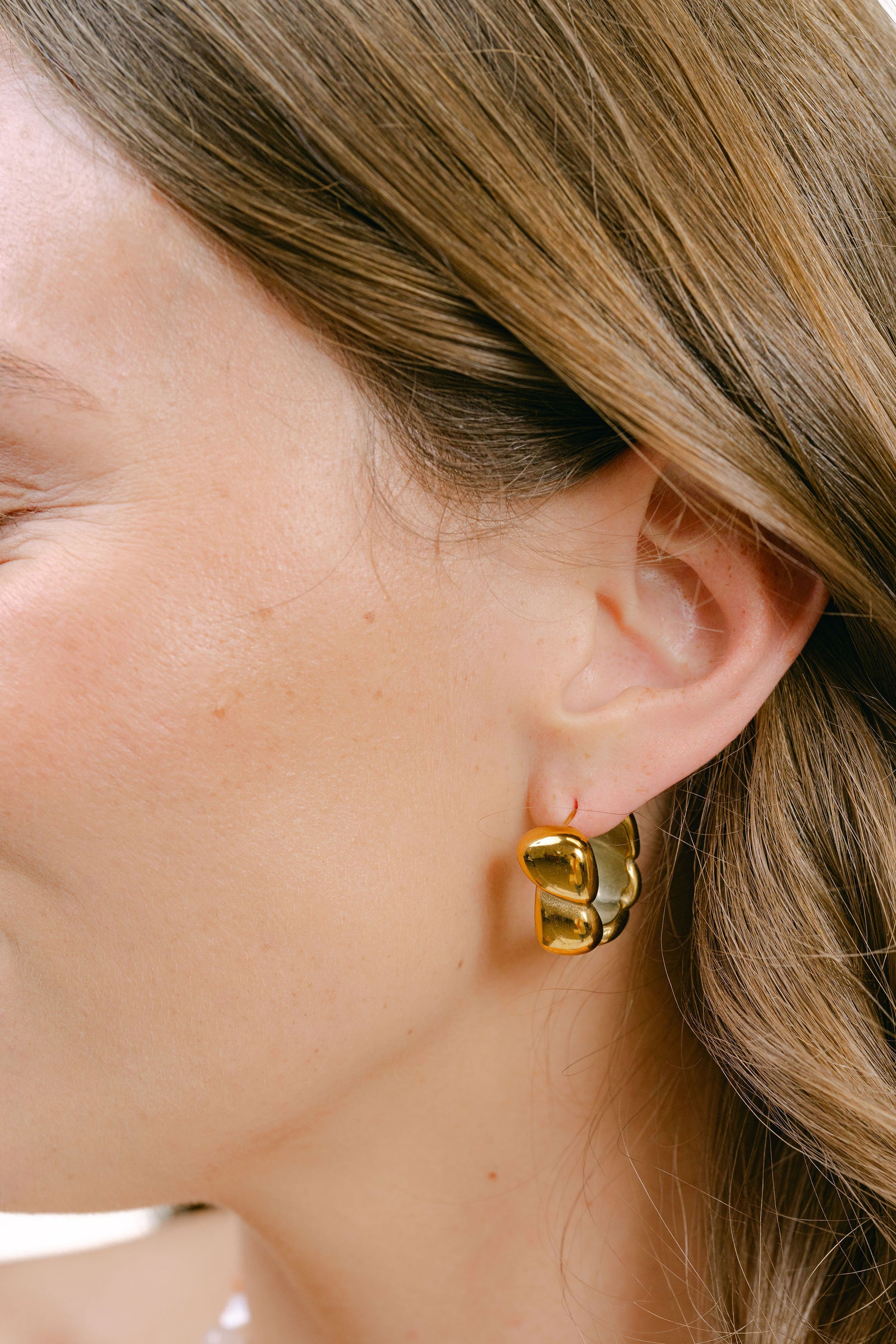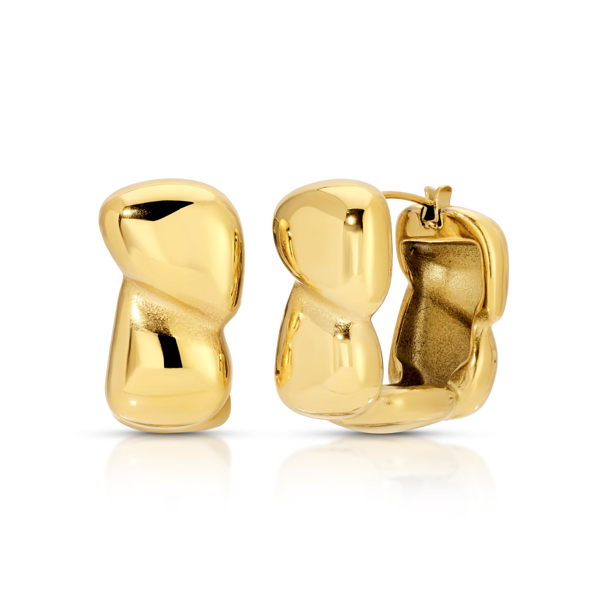Puffy, polished, and impossible to miss. The Cloud Hoops are a statement in softness and shine — like little golden cushions for your ears. Lightweight with a bold silhouette, they’re the perfect balance of playful and elevated.