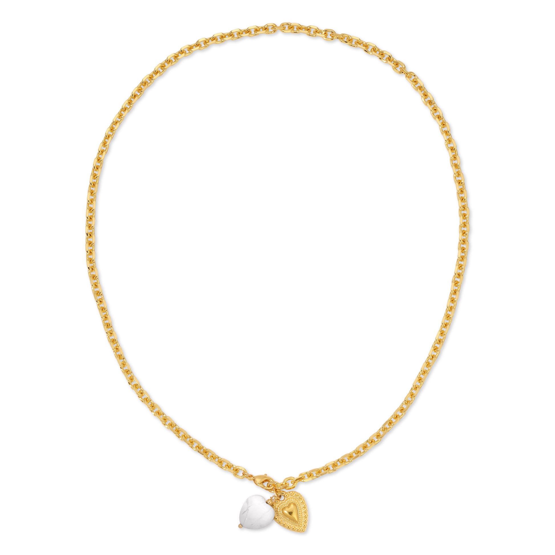 Chic, versatile, and full of charm. The Lariat Heart Necklace features a gold-filled chain with a front lobster clasp that lets you choose your length — wear it higher for a true lariat look or clasp it farther back for a classic necklace fit. Finished with a marbled white stone charm and a gold heart pendant, it’s a playful yet polished piece that moves effortlessly from everyday to evening.