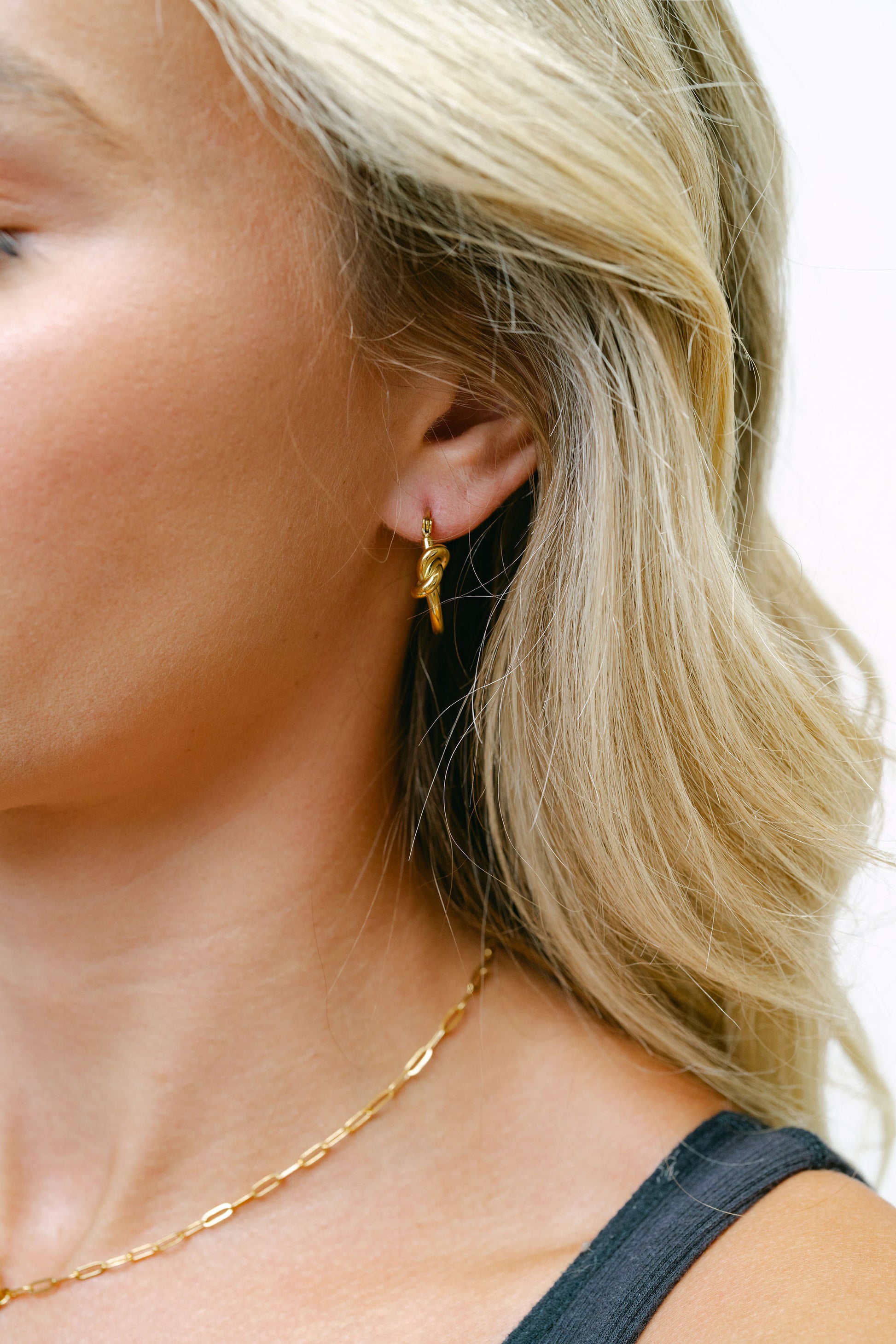 A classic with a little something extra. The Pretzel Hoop adds texture to your everyday look with a subtle twist detail that catches the light just right. Finished in 18k gold plating and made to last, these hoops are tarnish-free, waterproof, and hypoallergenic — an easy staple you’ll wear on repeat.