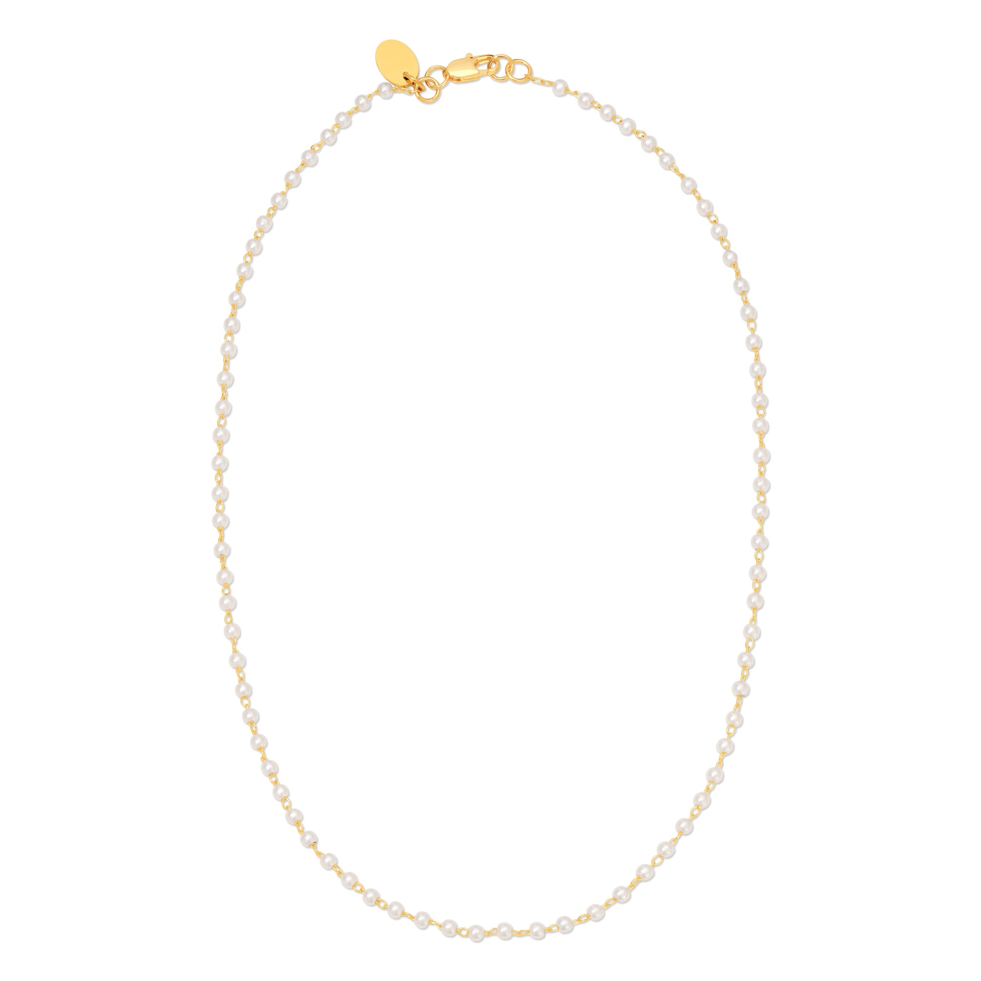 A sweet strand of tiny pearls that adds a touch of elegance to any look. Dainty yet eye-catching, this piece shines on its own or layered with your favorite charms and chains.