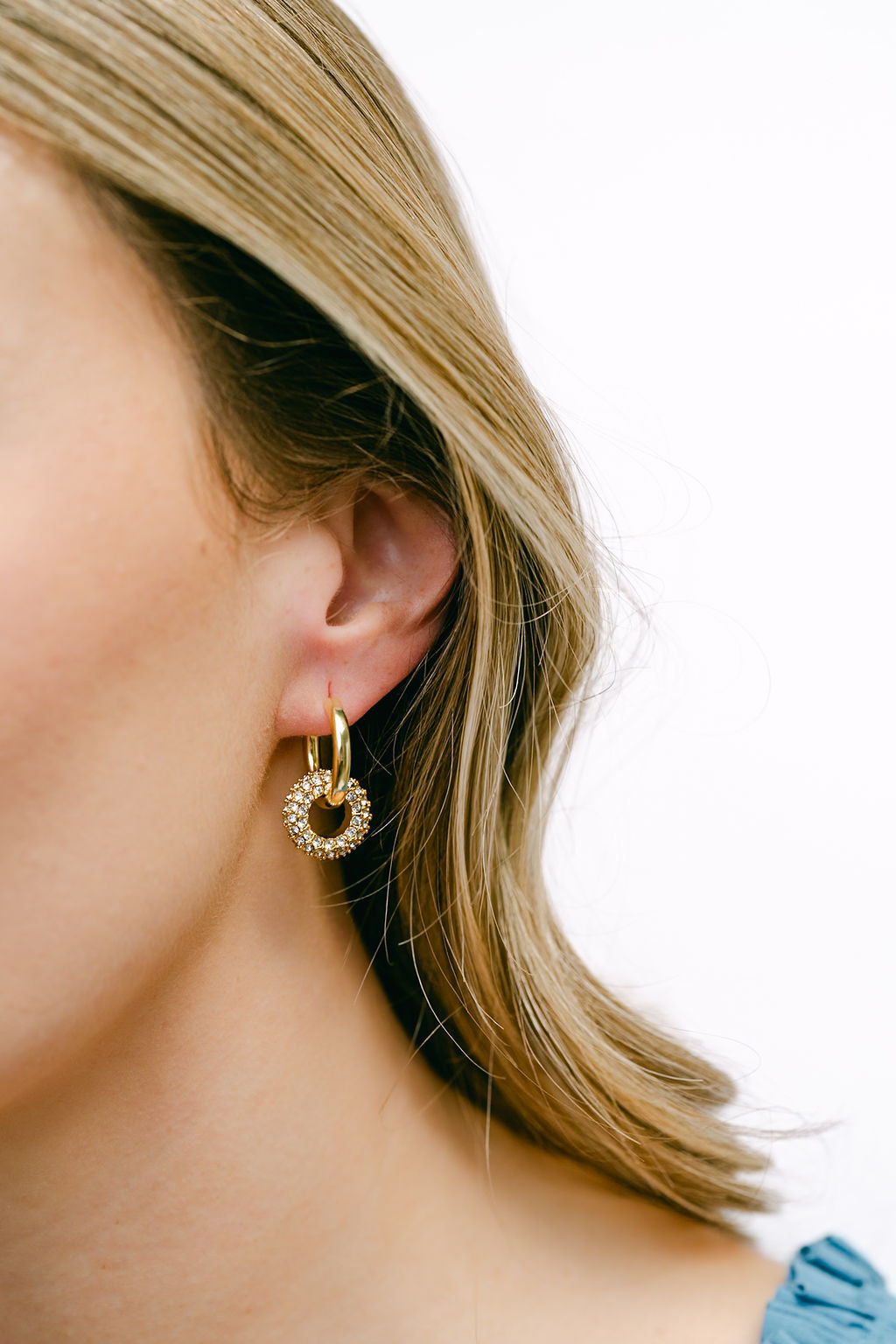 Sparkly, golden, and perfectly balanced. The Twilight Hoops feature a smooth gold loop paired with a shimmering pavé circle that catches the light beautifully. They offer just the right amount of glam.